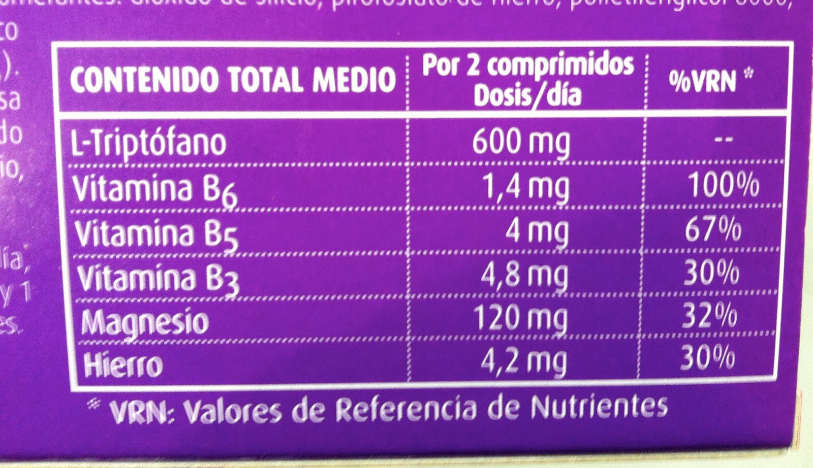 El metabolismo del triptófano requiere una cantidad adecuada de algunas vitaminas y minerales. Por ello los complementos alimenticios contienen vitamina B6 y magnesio.